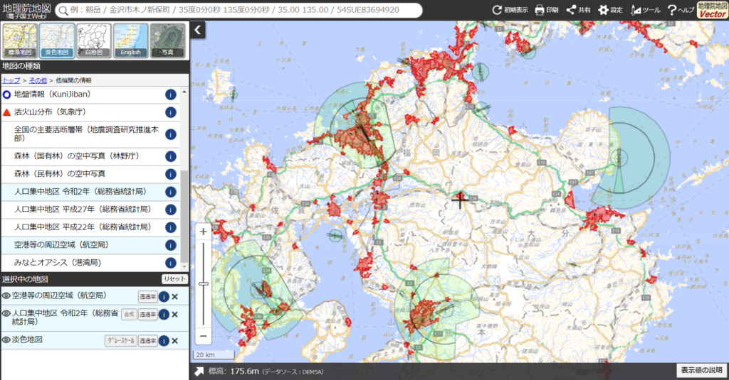 「空港等の周辺空港」・「人口集中地区(R6時点では R2バージョン)」を確認することです